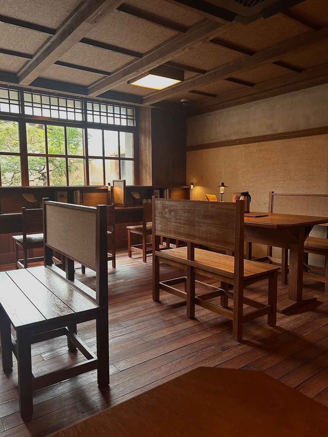 따뜻한 나무 재질의 인테리어와 은은한 조명이 아늑하고 편안한 분위기를 자아내,