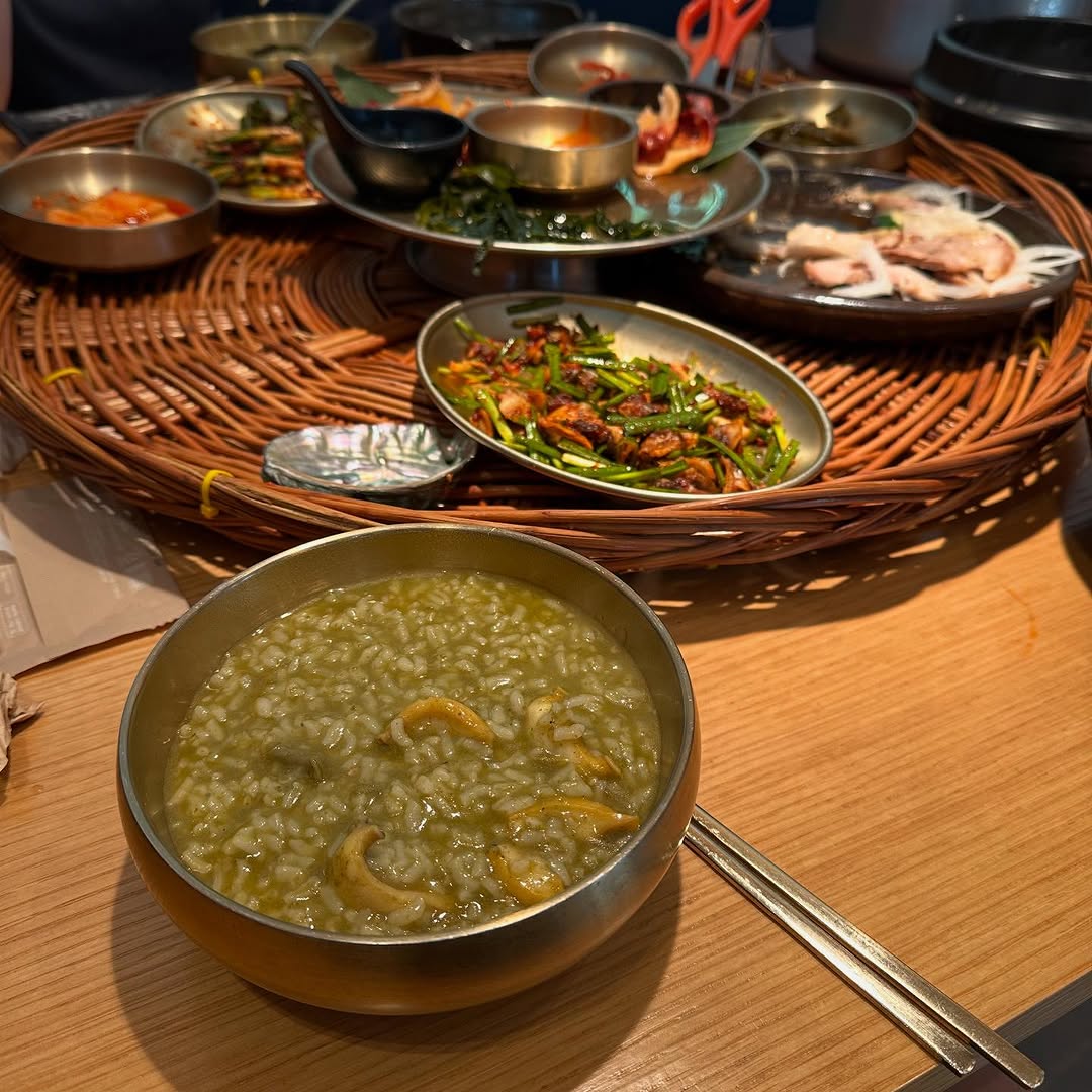 그리고 드디어 메인 메뉴, 전복죽이 등장했습니다! 🥣 이건 정말 #찐이에요! 한 입 먹자마자 "제주도 안 가도 되겠다"는 말이 절로 나올 정도였어요. 😮