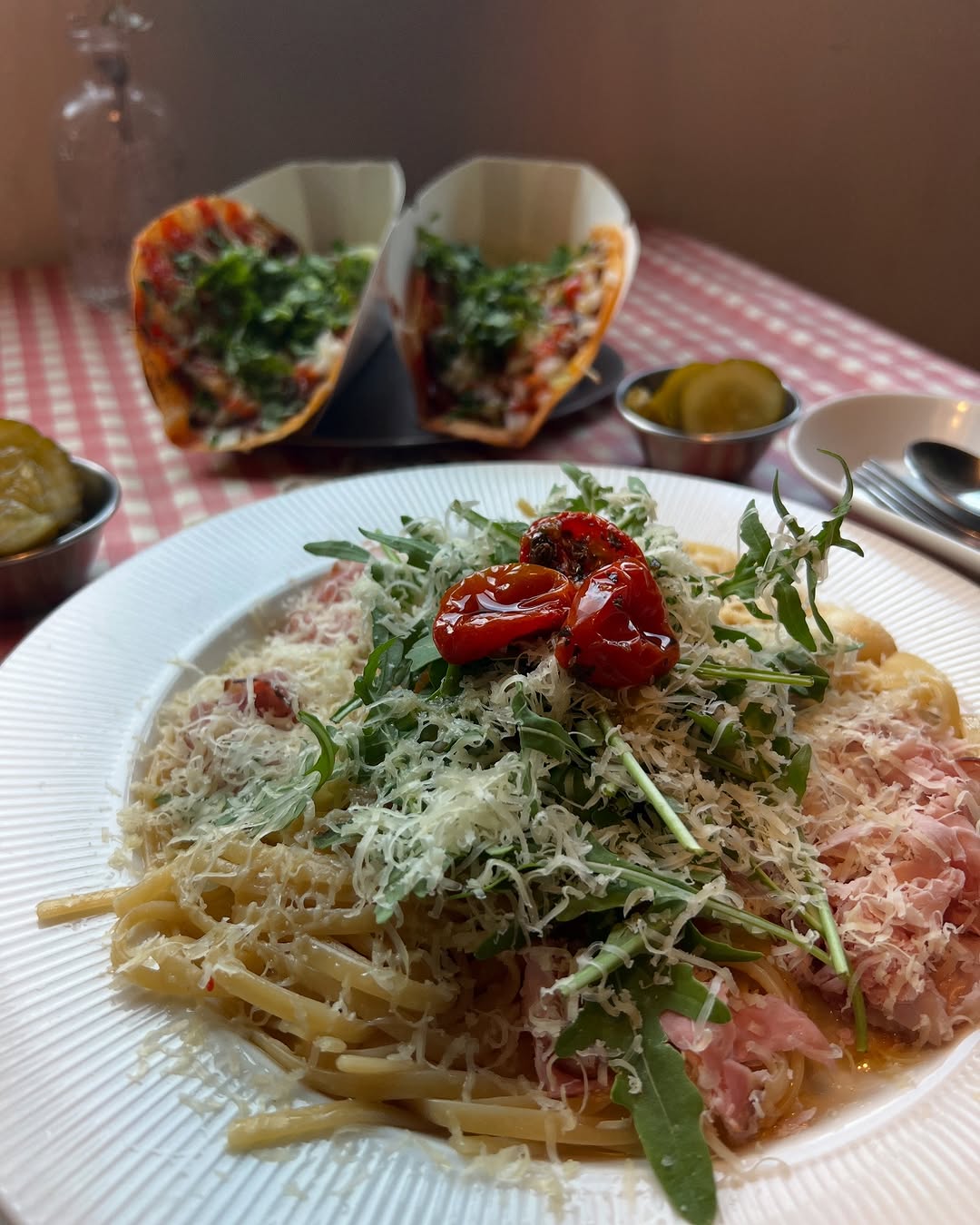 또한, 7일간 직접 숙성시켜 만든 방부제 없는 잠봉햄이 듬뿍 올라간 #잠봉오일파스타 는 느끼함 대신 마늘향 가득한 깔끔한 맛으로 제 입맛을 사로잡았어요. 🍝 담백하면서도 매콤한 풍미가 일품이어서 계속 손이 가더라고요. 😋